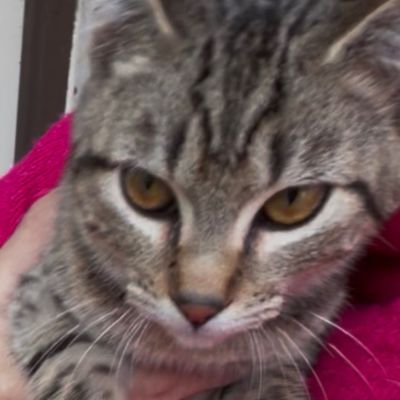 The gray kitten is a female, and the brown kitten is a male. They love to be held, purr nonstop, and enjoy human attention. They are about 5 months old, as of January 12th…they’re fixed, and up to date on all their shots.